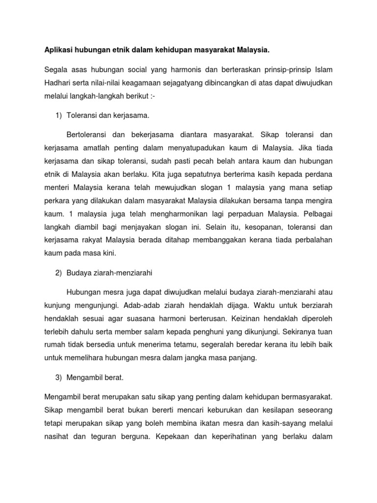 Aplikasi Hubungan Etnik Dalam Kehidupan Masyarakat Malaysia