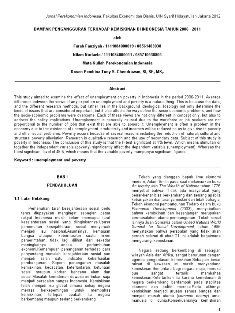 Dampak Pengangguran Terhadap Kemiskinan Di Indonesia