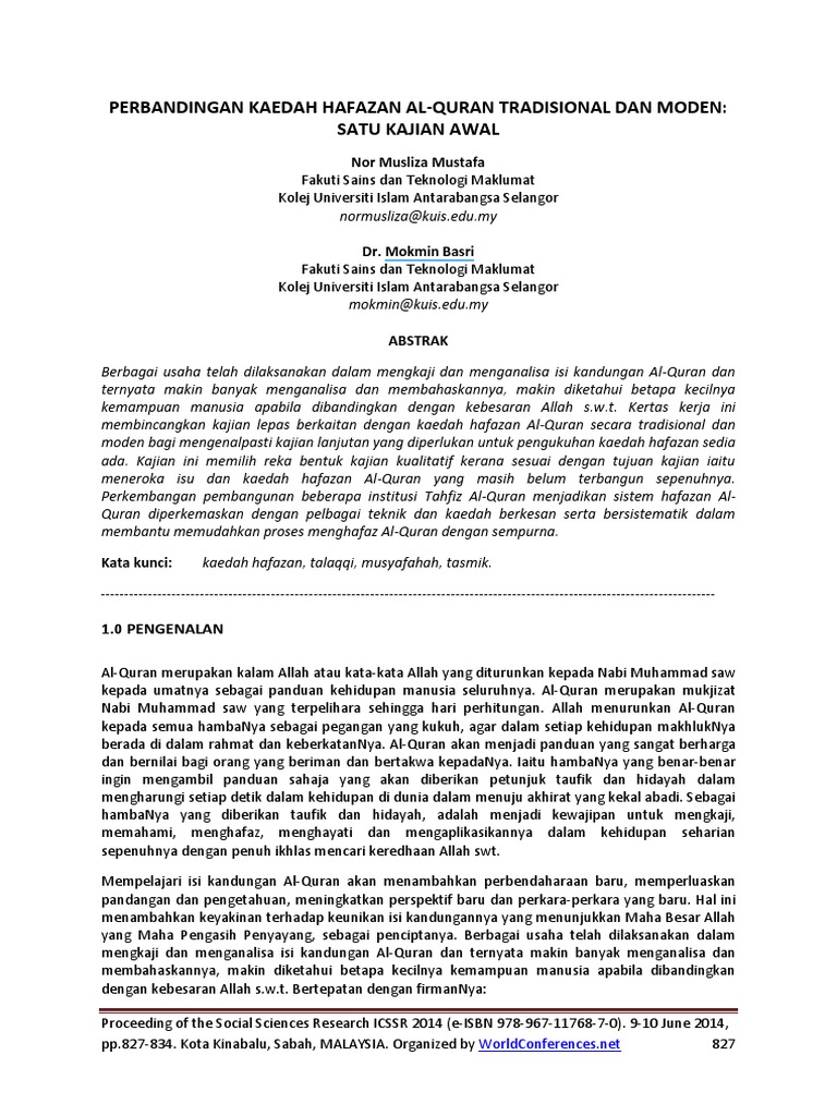 Pdf Perbandingan Kaedah Hafazan Al Quran Tradisional Dan Moden Satu Kajian Awal