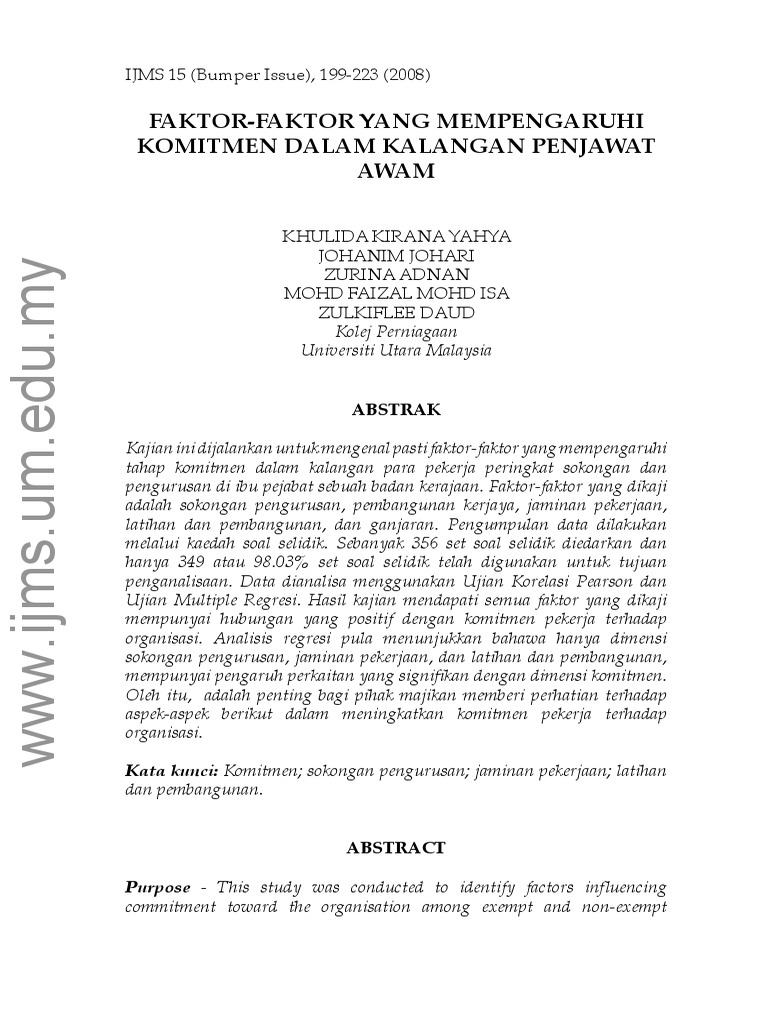 Faktor Faktor Yang Mempengaruhi Komitmen Dalam Kalangan Penjawat Awam