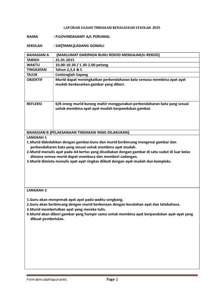 Borang Kajian Tindakan Format Sehelai Govindasamy
