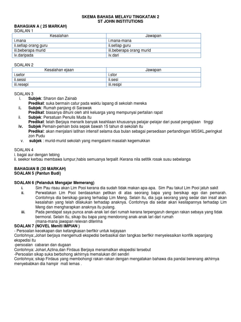 Skema Bahasa Melayu Tingkatan 1