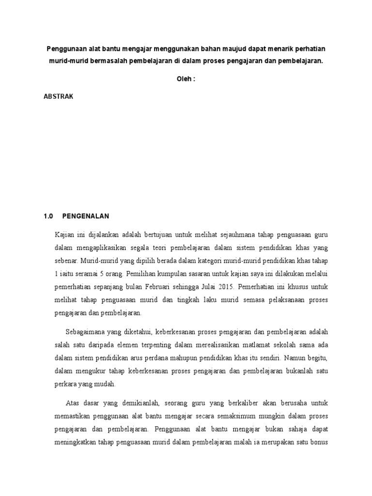 Contoh Kajian Tindakan Pendidikan Khas Ppgb