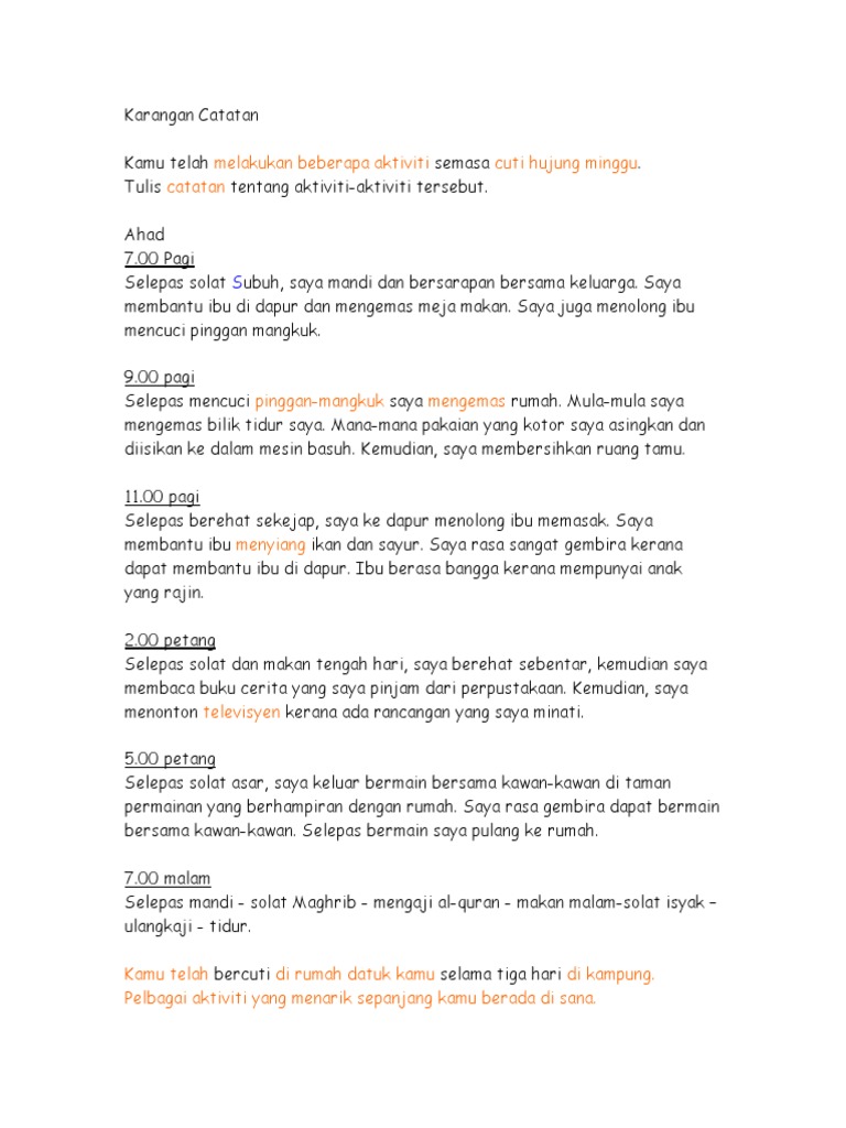 Sjkc Isi Karangan Untuk Murid Galus Penulisan Aktiviti Hujung Minggu