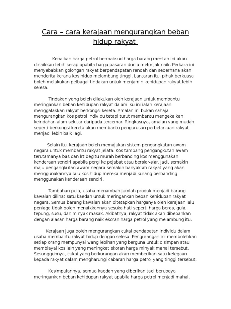 Karangan Pmr Langkah Mengatasi Kenaikan Harga Barangan