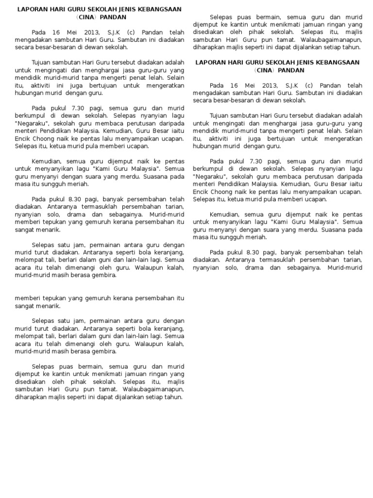 Karangan Laporan Sambutan Hari Guru Sekolah Jenis Kebangsaan 9n0k5de2rp4v