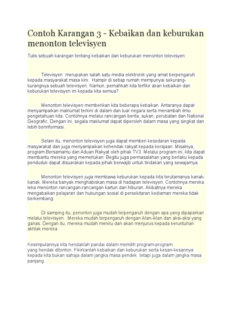 Contoh Contoh Karangan Sekolah Rendah Perbincangan Kebaikan Dan Keburukan Menonton Televisyen