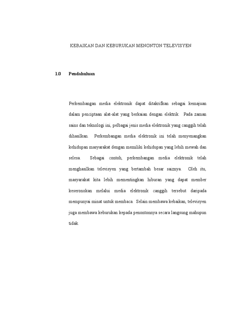 Karangan Jenis Perbahasan Menonton Televisyen Lebih Banyak Mendatangkan Kesan Yang Buruk