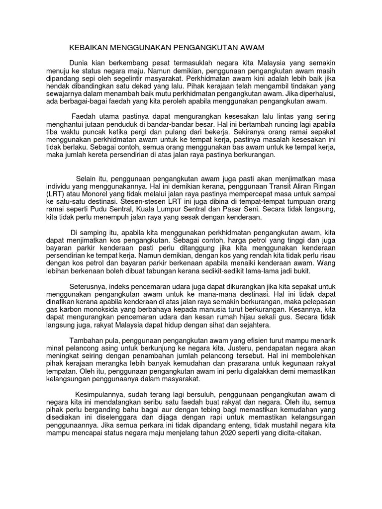 Contoh Karangan Masalah Pengangkutan Awam Surat 35
