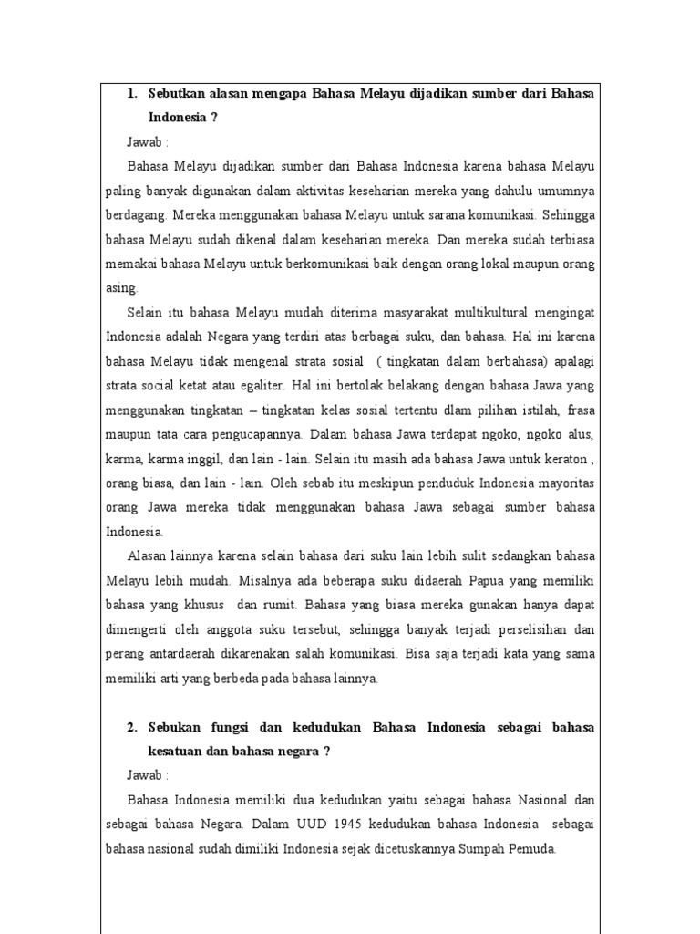 Sebutkan Alasan Mengapa Bahasa Melayu Dijadikan Sumber Dari Bahasa Indonesia