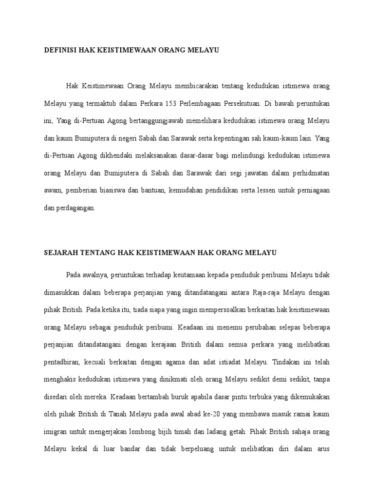 Pdf Bincangkan Mengenai Hak Istimewa Orang Melayu Dalam Perlembagaan Malaysia