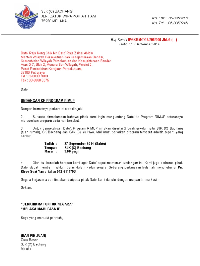 Ruj Kami Tarikh 15 September 2014 Sjk C Bachang Jln Datuk Wira Poh Ah Tiam 75250 Melaka