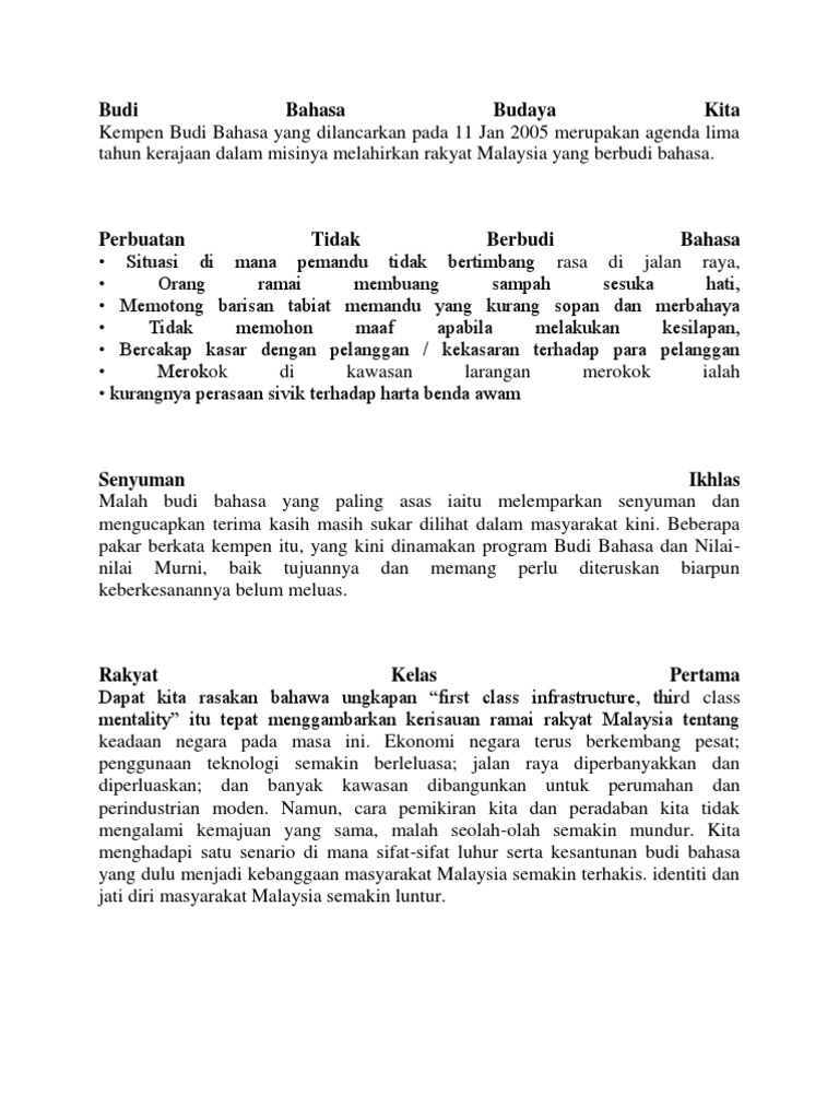 Budi Bahasa Budaya Kita Kepentingan Dan Langkah Langkah Untuk Memupuk Amalan Budi Bahasa Dalam Kalangan Masyarakat Yang Berbilang Kaum Di Malaysia