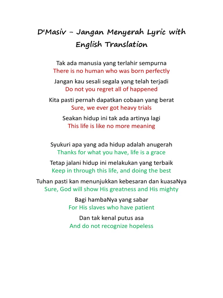Jangan Menyerah Dengan Terjemahan Bahasa Inggris