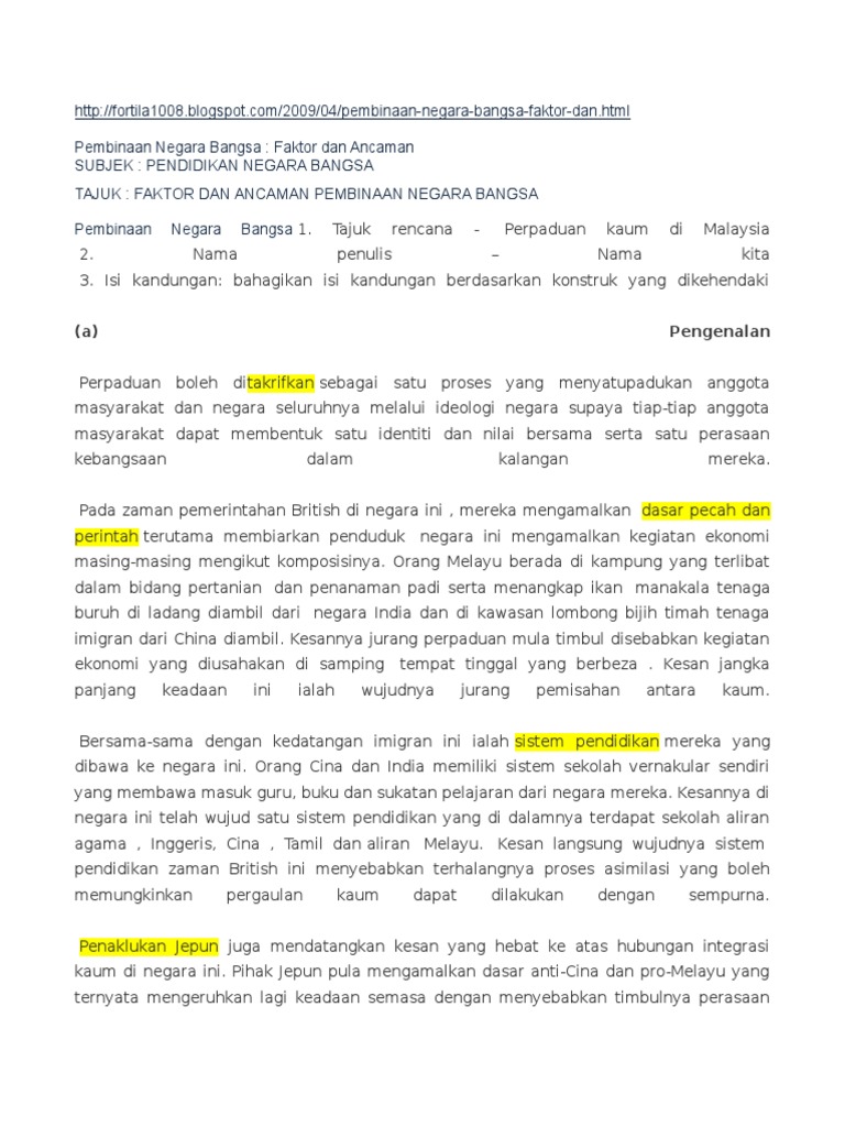 Kenalpasti Faktor Faktor Pembinaan Negara Dan Bangsa