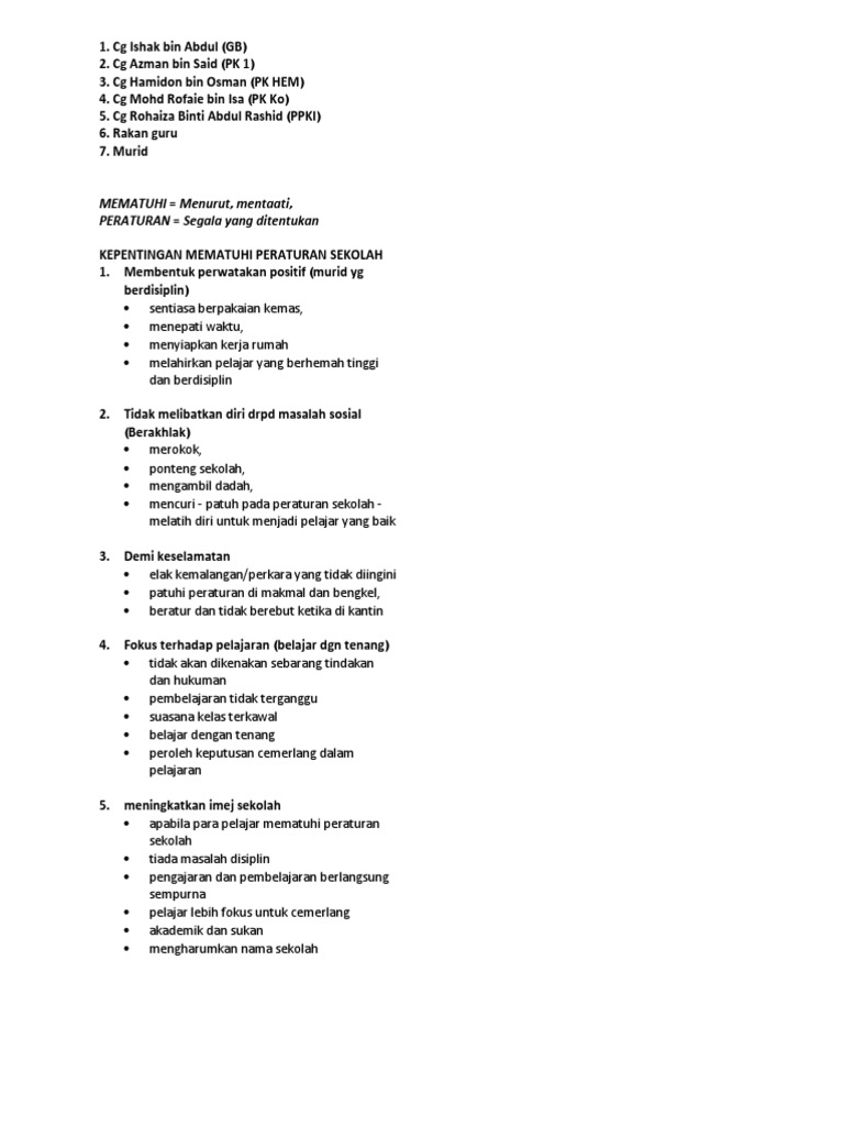Kepentingan Mematuhi Peraturan Sekolah Docx