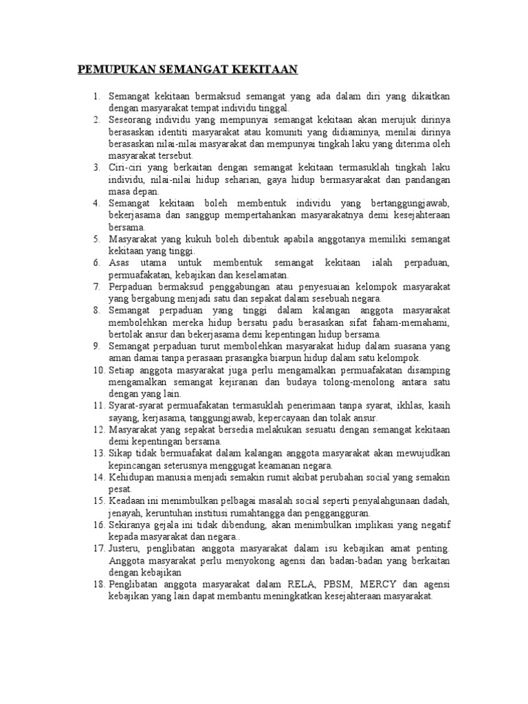 Pemupukan Semangat Kekitaan