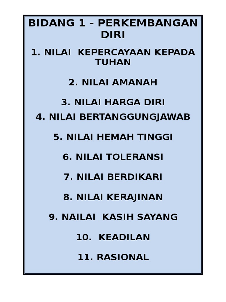 Senarai Nilai Dan Definisi Nilai Pendidikan Moral Mengikut Bab