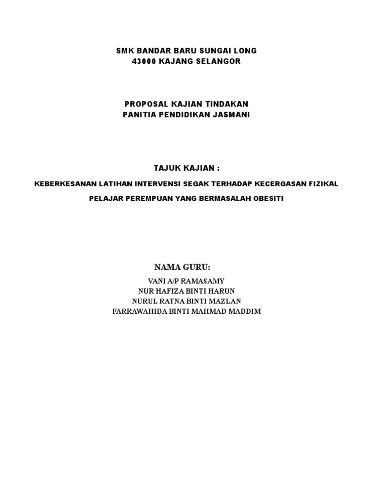 Doc Contoh Penulisan Kertas Cadangan Proposal Kajian Tindakan Ali Sagir Academia Edu