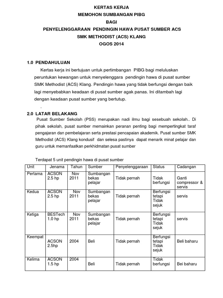 Contoh Kertas Kerja Mohon Sumbangan Pibg Jawat Kos