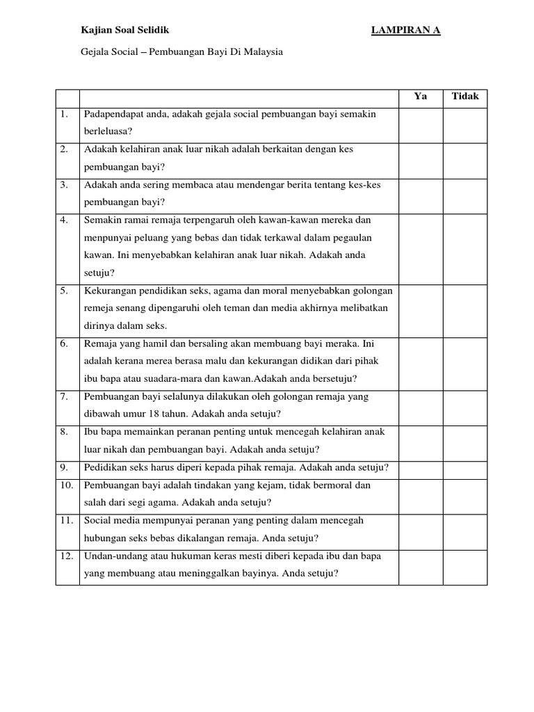 Kajian Soal Selidik Kes Pembuangan Bayi Di Malaysia