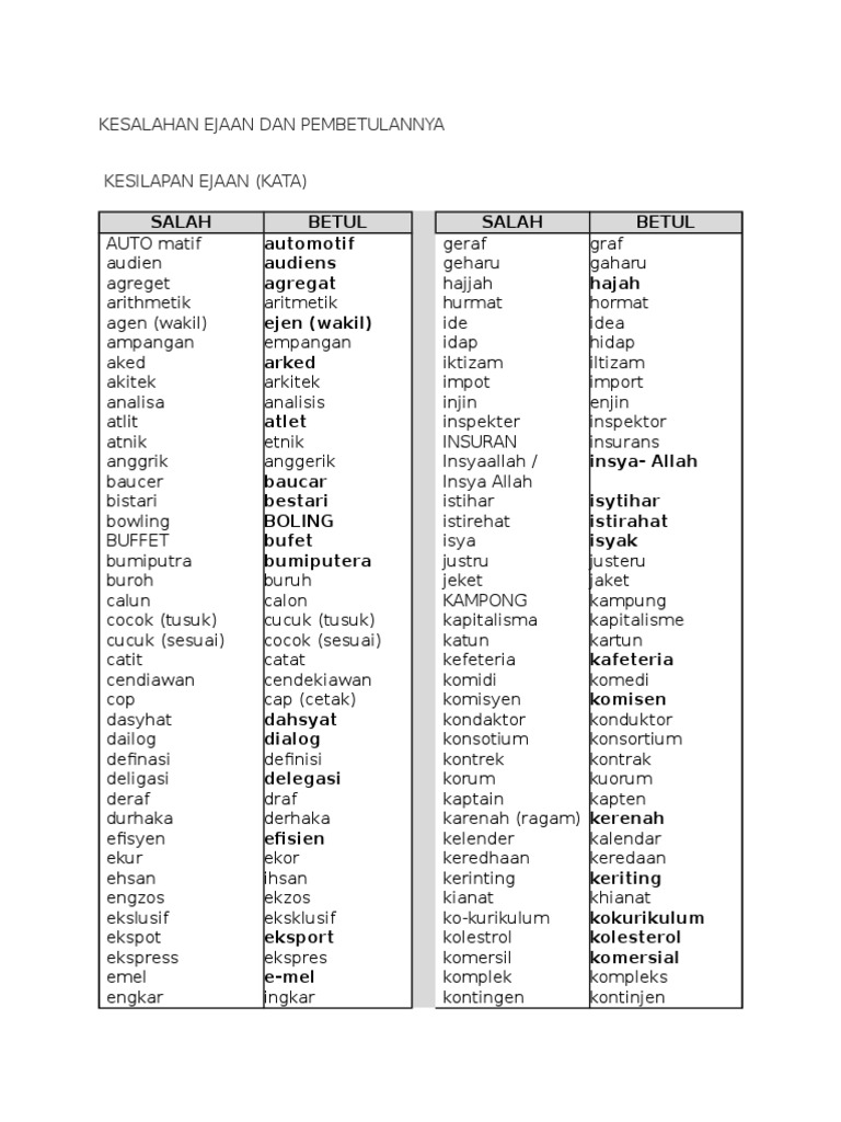 Kesalahan Ejaan Ejaan Bahasa Melayu Yang Betul