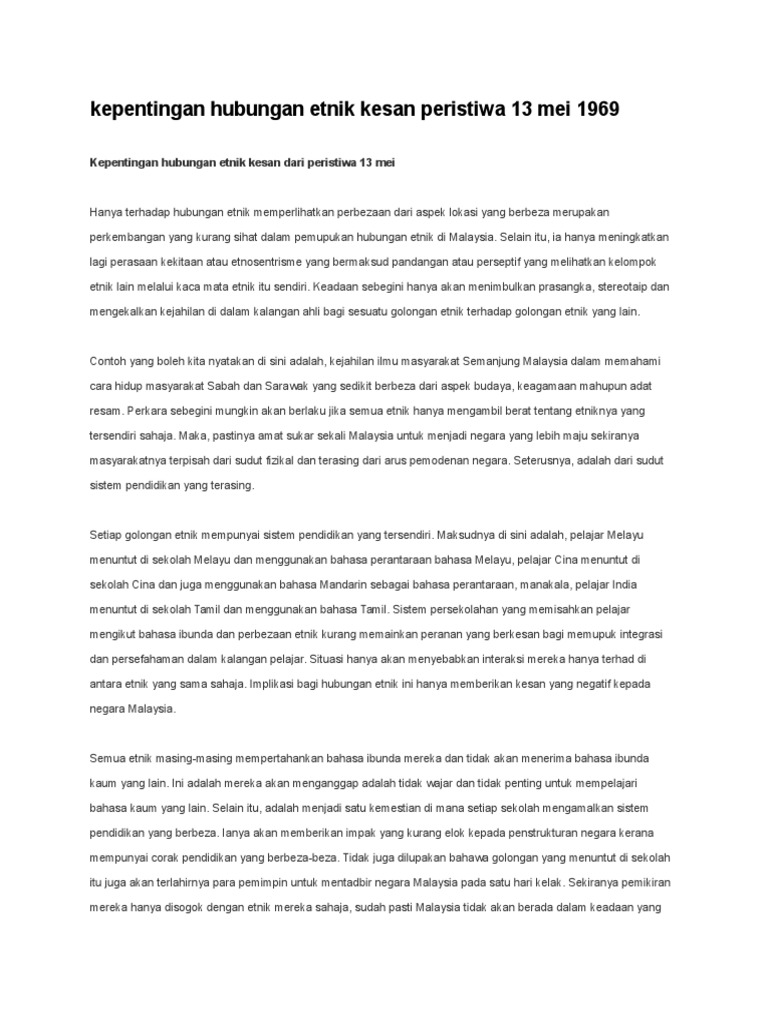 Kepentingan Hubungan Etnik Kesan Peristiwa 13 Mei 1969