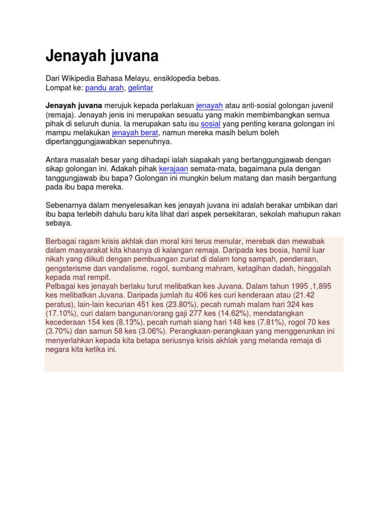 Kesan Kesan Jenayah Juvana Kepada Masyarakat Bicara Sosial Malaysia