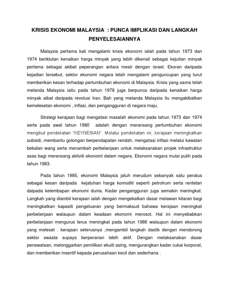 Krisis Ekonomi Malaysia Punca Implikasi Dan Langkah Penyelesaian Oleh Abdul Aziz Awang Pdf Free Download