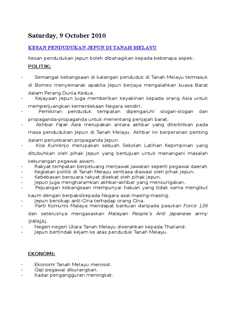 Essay Kesan Penjajahan Jepun