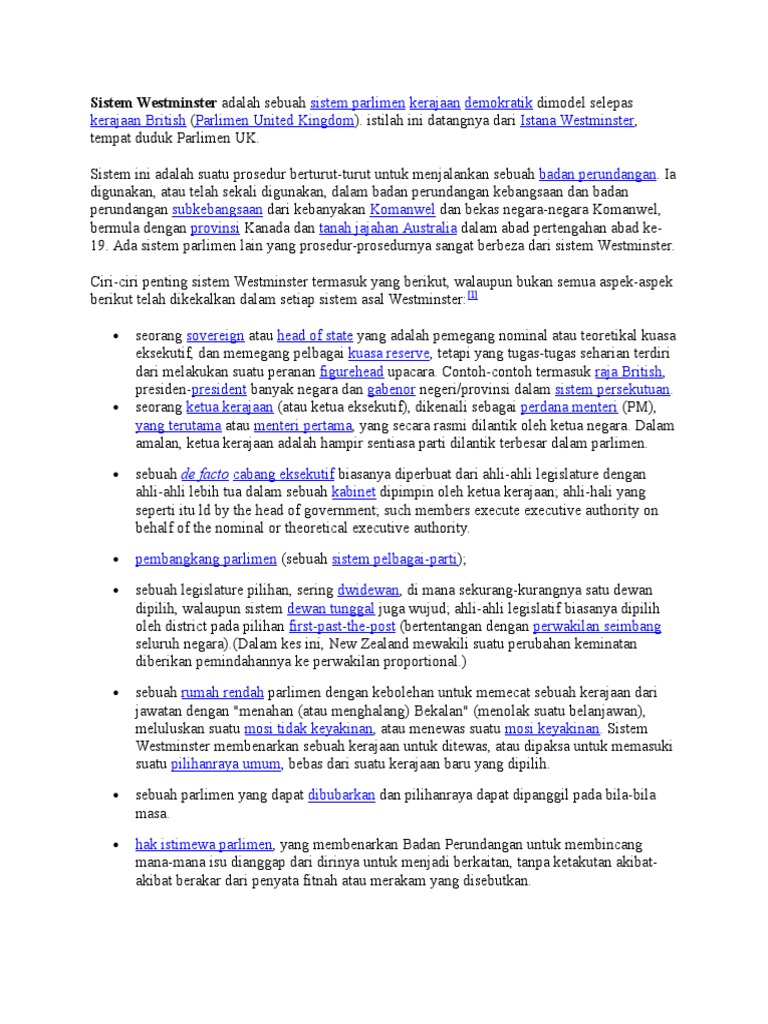 Sistem Westminster Adalah Sebuah Sistem Parlimen Kerajaan Demokratik Dimodel Selepas Kerajaan British