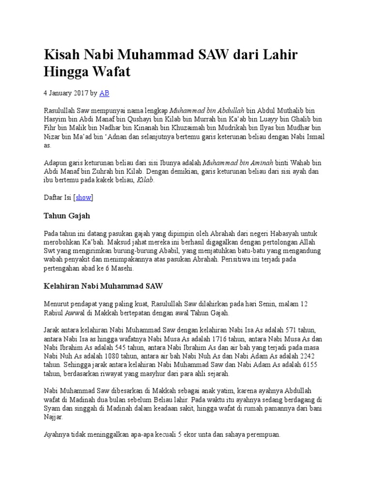 Doc Kisah Nabi Muhammad Saw Dari Lahir Hingga Wafat Docx Riza Satria Academia Edu