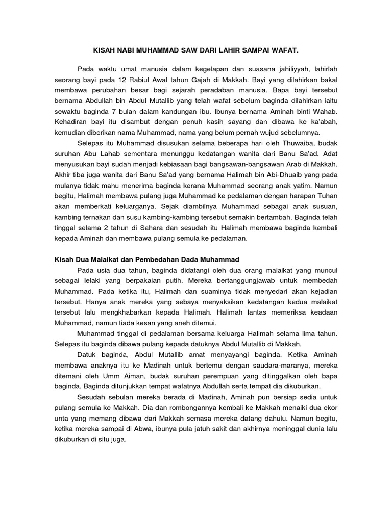 Doc Kisah Nabi Muhammad Saw Dari Lahir Hingga Wafat Docx Riza Satria Academia Edu