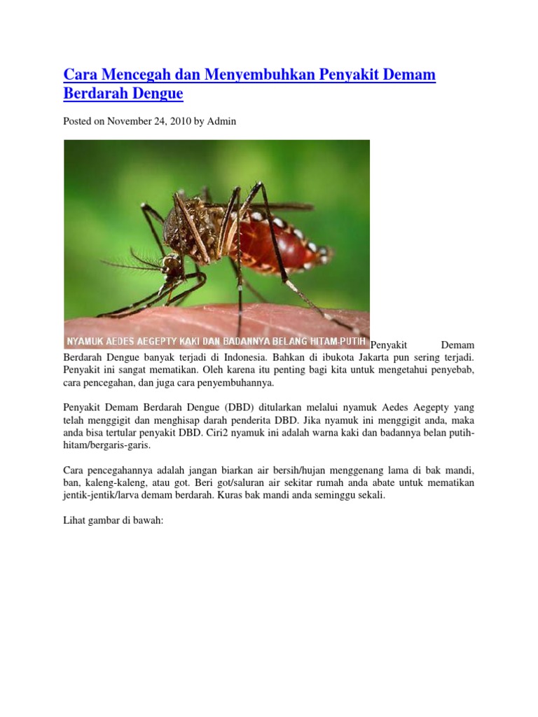 Cara Mencegah Dan Menyembuhkan Penyakit Demam Berdarah