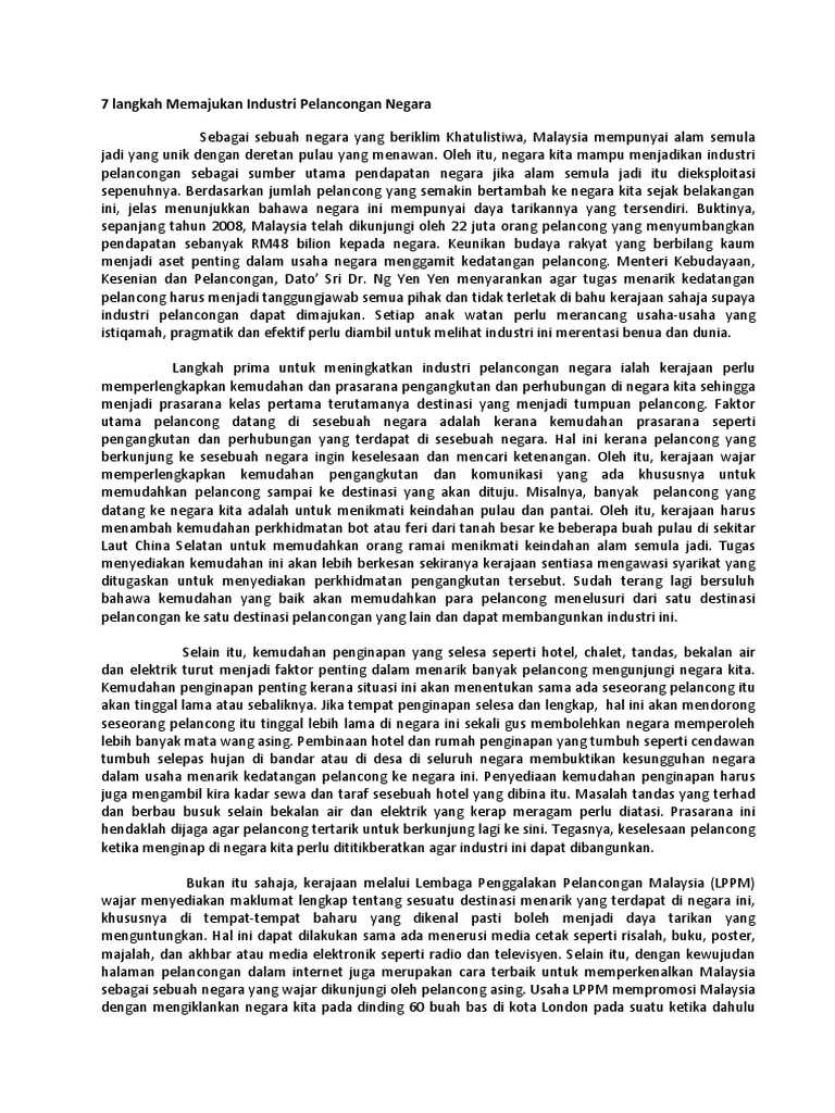 Karangan Bahasa Melayu Usaha Usaha Memajukan Industri Pelancongan Negara