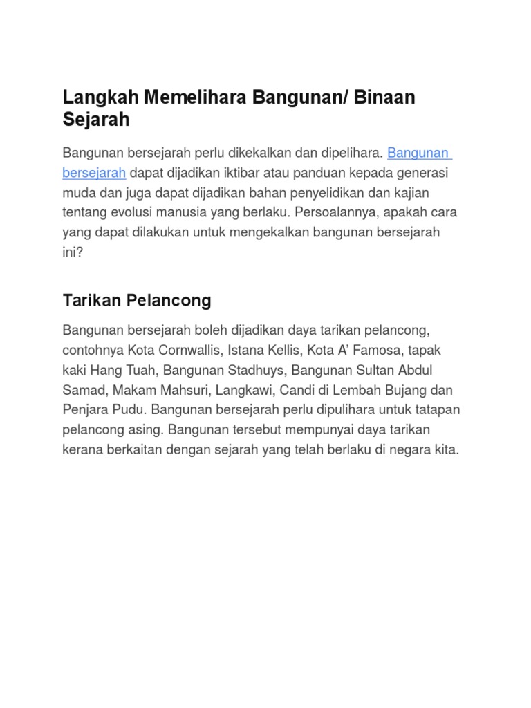 Contoh Karangan Usaha Usaha Memelihara Dan Memullihara Bangunan Bersejarah