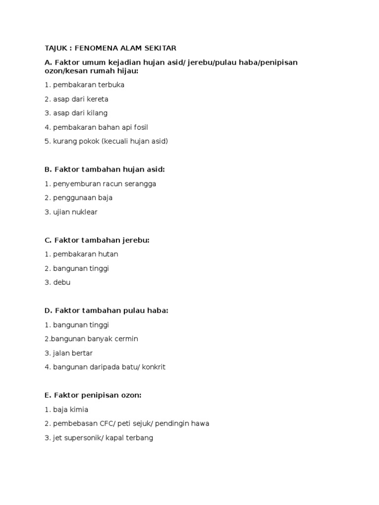Fenomena Alam Sekitar Hujan Asid Penipisan Ozon Pulau Haba Rumah Hijau Jerebu