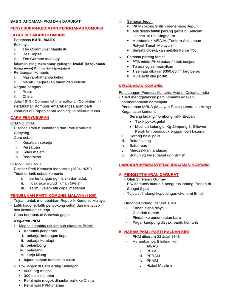 Ancaman Parti Komunis Malaya Dan Darurat Sejarah Tingkatan 3 Bab 3