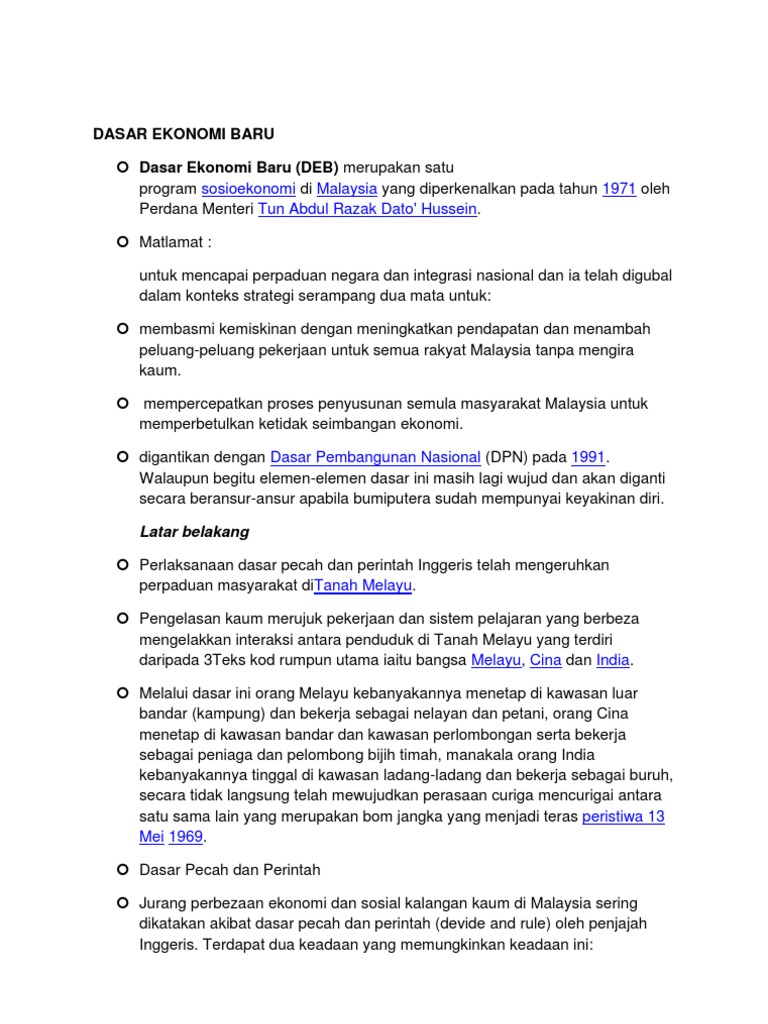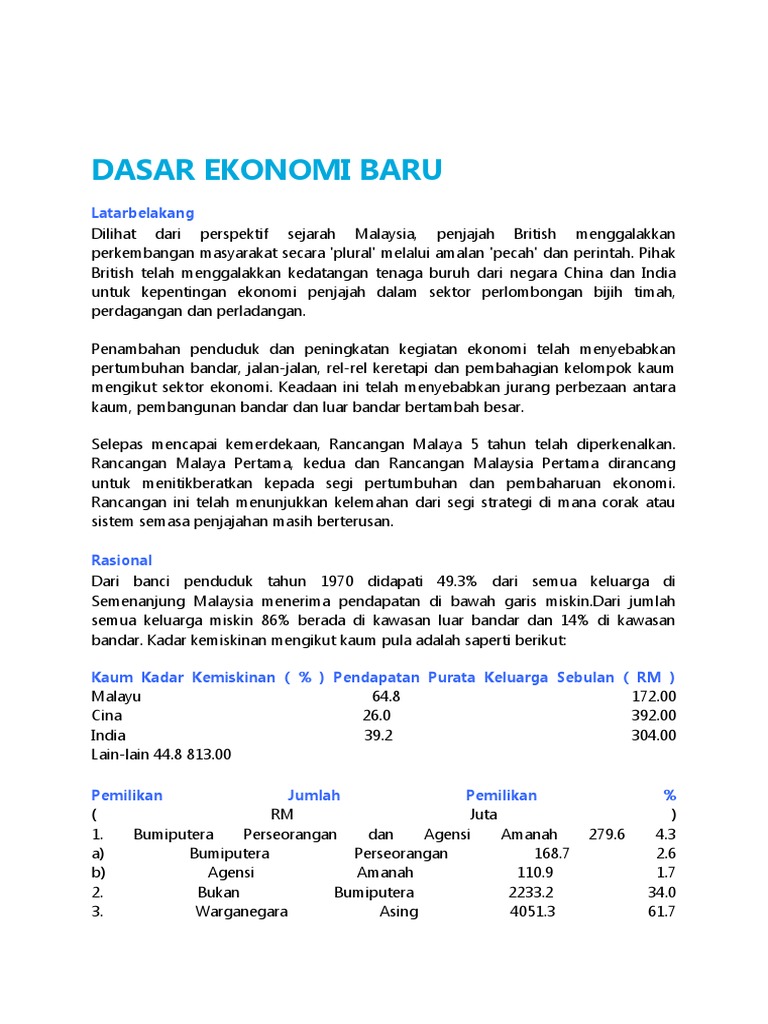 Negaraku Malaysia Kajian Dasar Ekonomi Baru