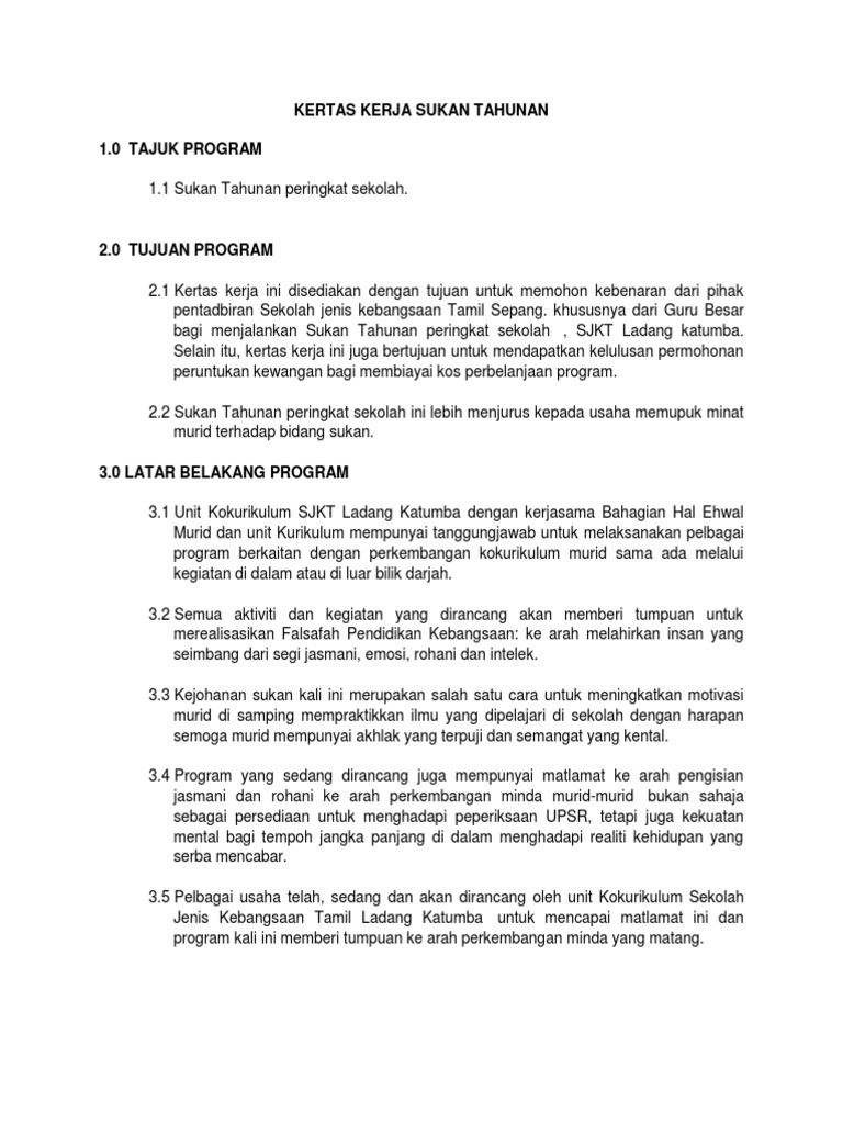 Kertas Kerja Sukan Tahunan 2018 Terkini Pages 1 16 Text Version Anyflip