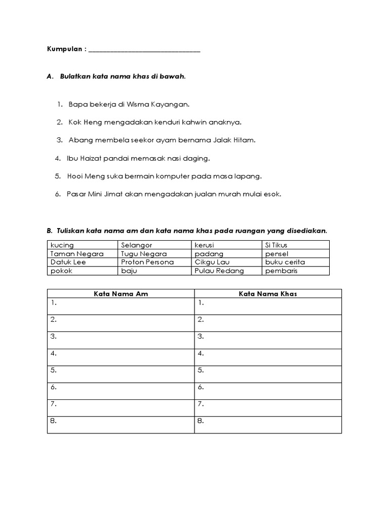 Latihan Kata Nama Am Dan Khas Tahun 4