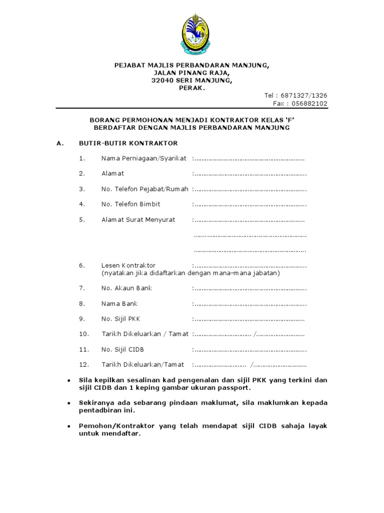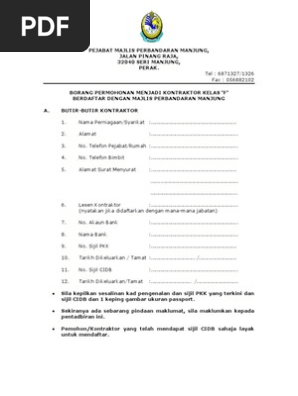 Kelas Jenis Lesen Kontraktor Pkk Kepala Sub