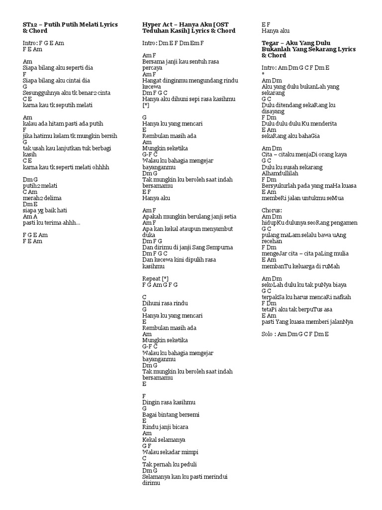 Not Angka Aku Yang Dulu Bukanlah Yang Sekarang Not Angka Lagu