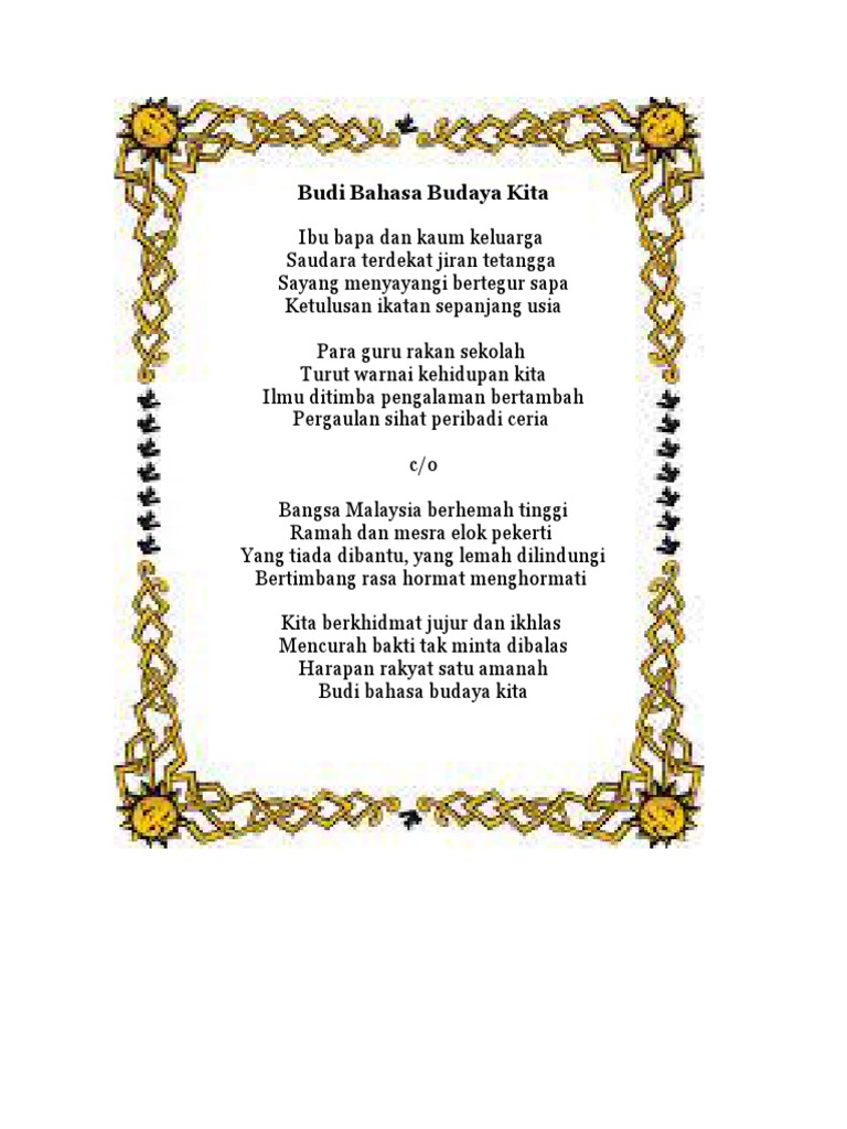 Doc Lirik Lagu Budi Bahasa Budaya Kita Cikgu Nabila Academia Edu