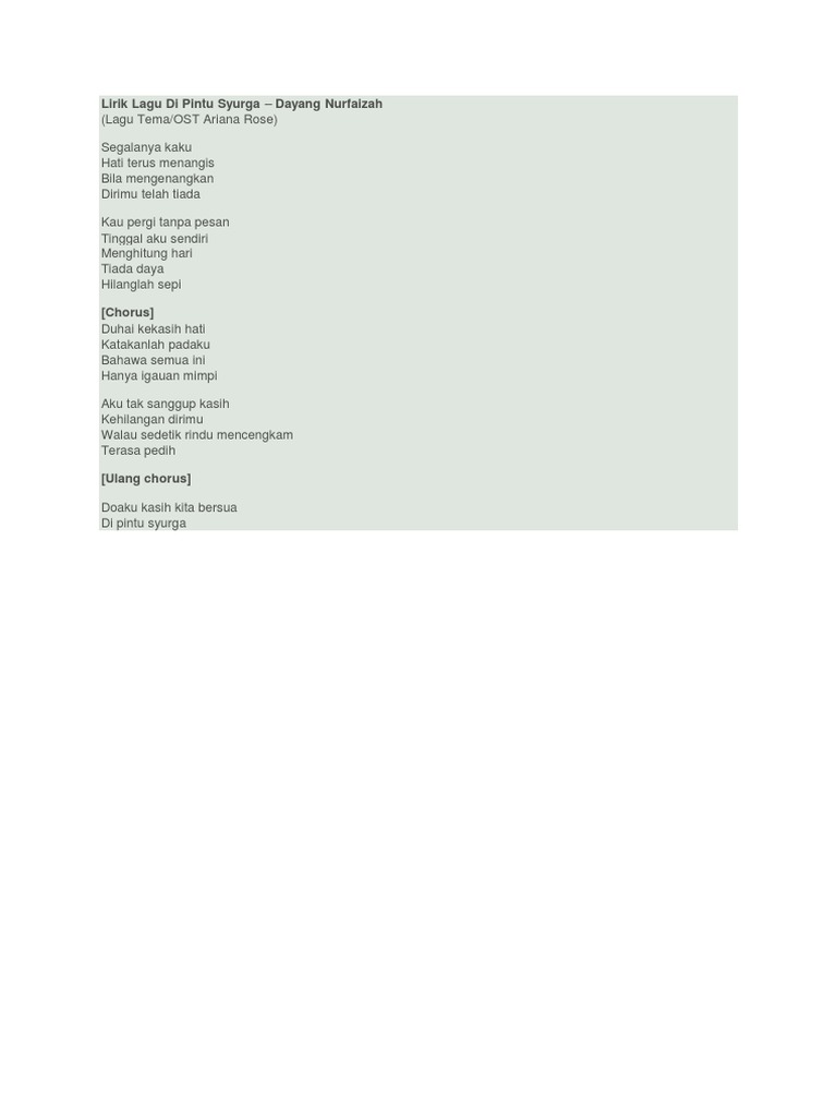 Dayang Nurfaizah Di Pintu Syurga Lyrics Genius Lyrics