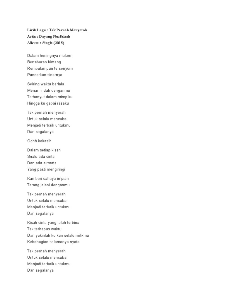 Lirik Lagu Best Lirik Lagu Tak Pernah Menyerah Dayang Nurfaizah