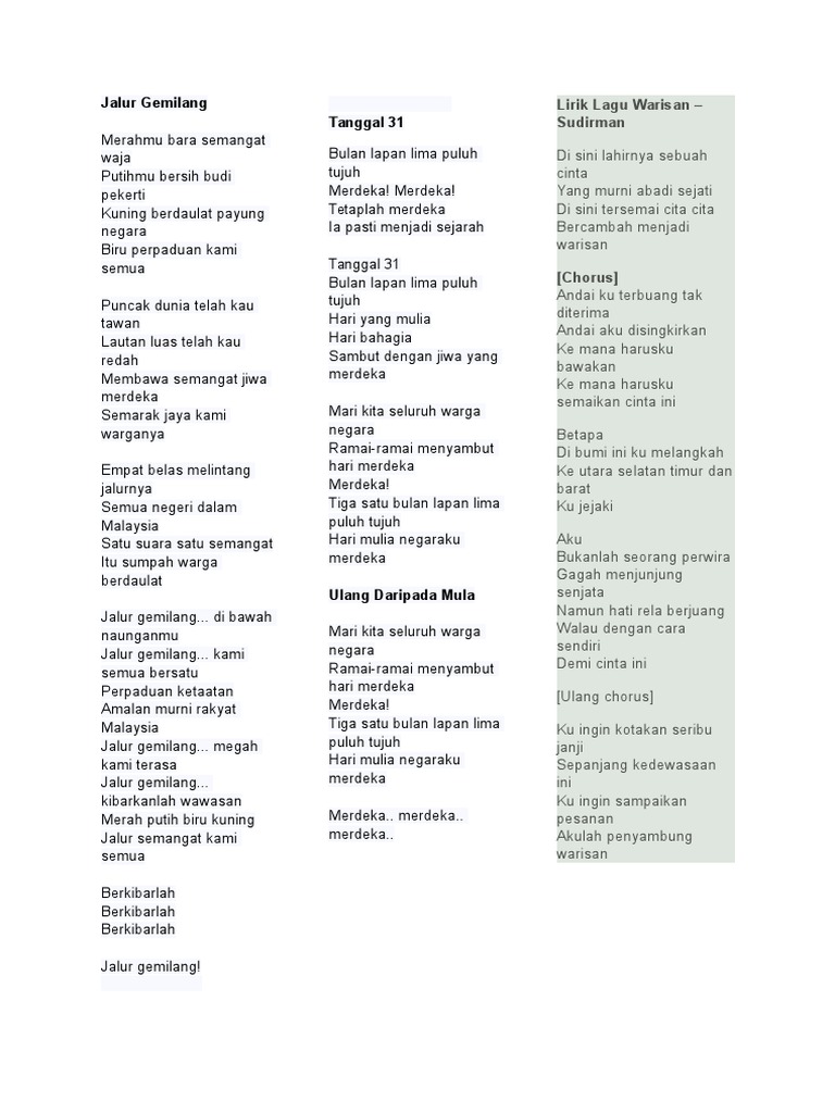 Lirik Jalur Gemilang Chilangomadrid Com