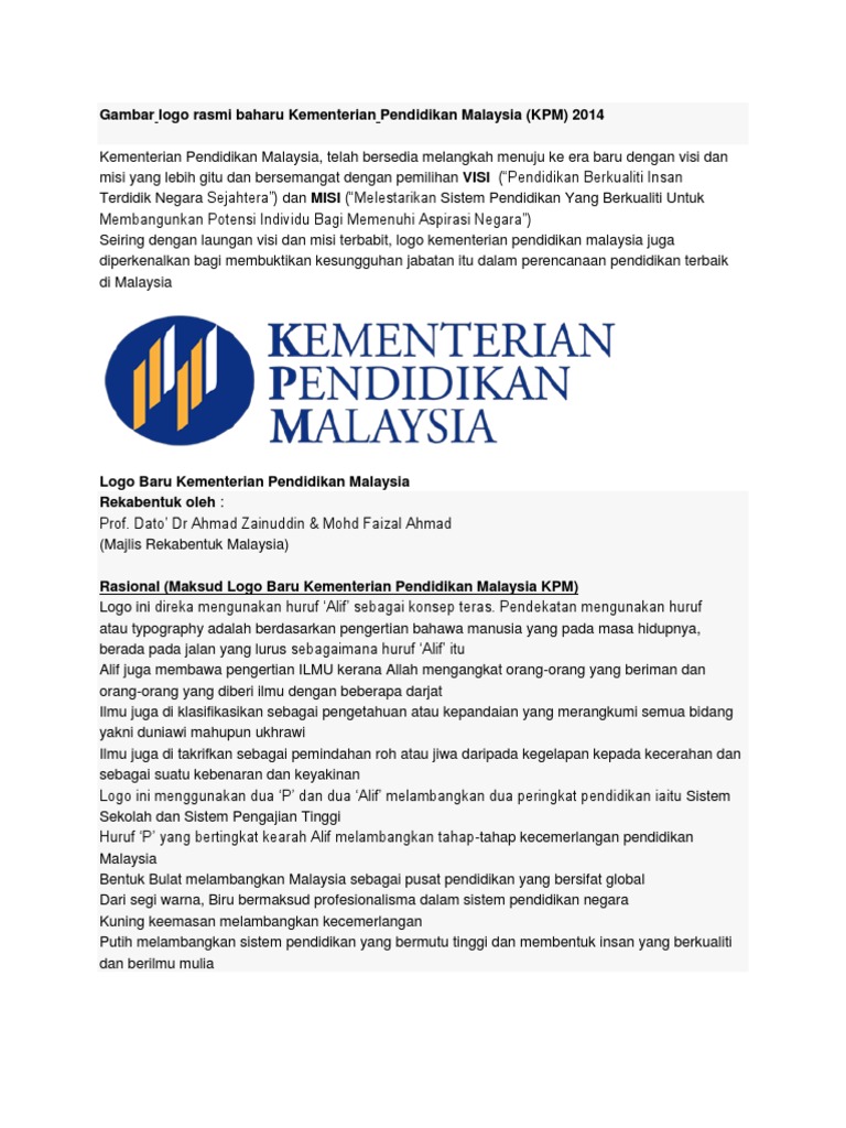 Sekolah Kebangsaan Padang Jawa Logo Kpm Kementerian Pendidikan Malaysia Visi Dan Misi Yang Baru