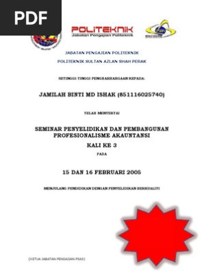 Jamilah Binti Md Ishak 851116025740 Jabatan Pengajian Politeknik Politeknik Sultan Azlan Shah Perak