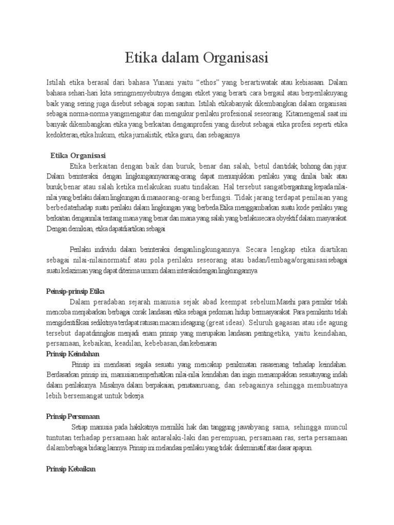 Contoh Masalah Etika Dalam Organisasi Kabar Blok